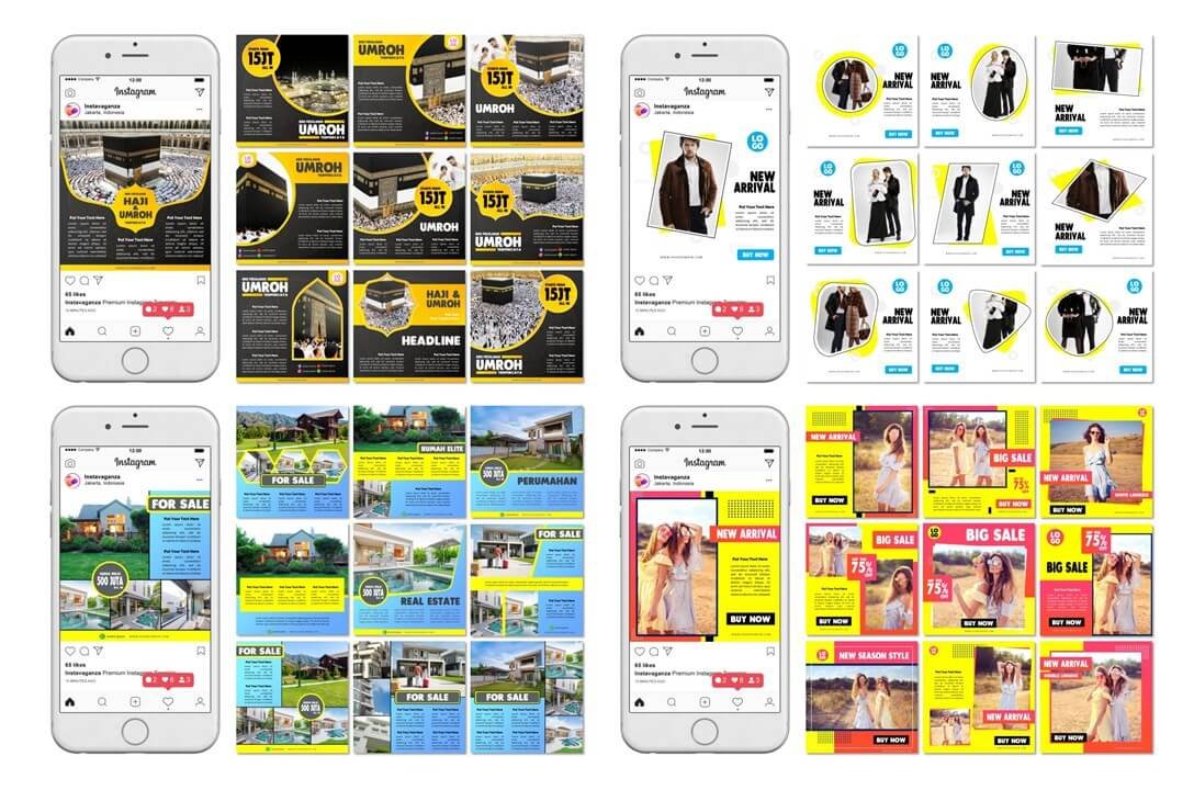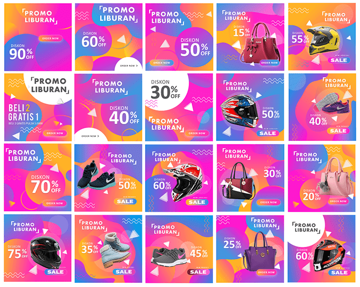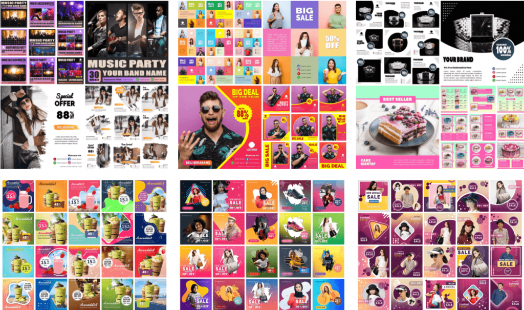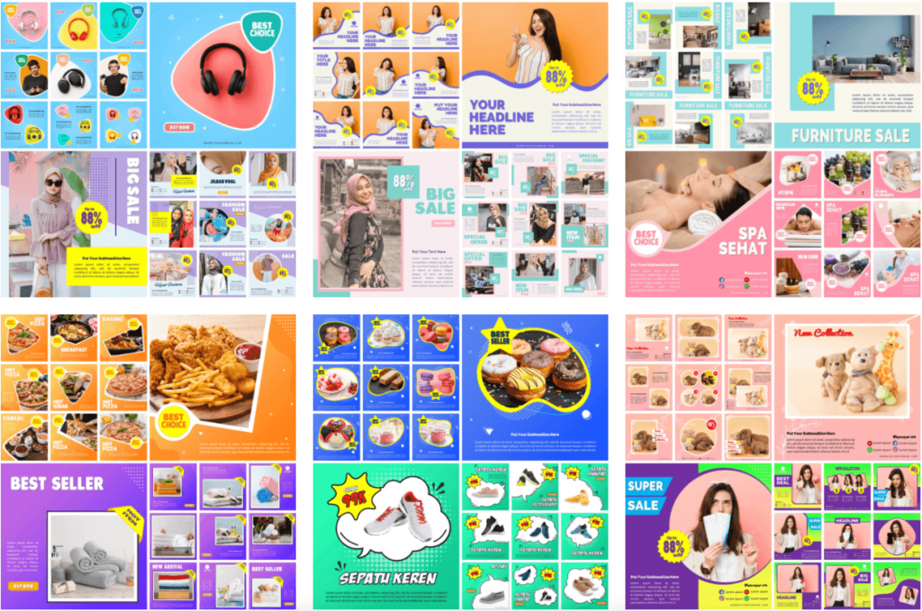 Instavaganza merupakan bundle template desain Instagram premium siap pakai yang terdiri dari berbagai niche yang dapat diedit dengan mudah menggunakan powerpoint saja. Dengan Instavaganza, anda dapat dengan mudah membuat banner Instagram yang eye-catching untuk meningkatkan penjualan anda.